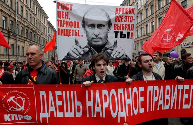 Mientras tanto, podemos disrutar de las siguientes imágenes de agencia sobre la movilización del PCFR y su participación en la gran marcha «Rusia sin Putin» a propósito de la Gran Revolución Socialista de Octubre.