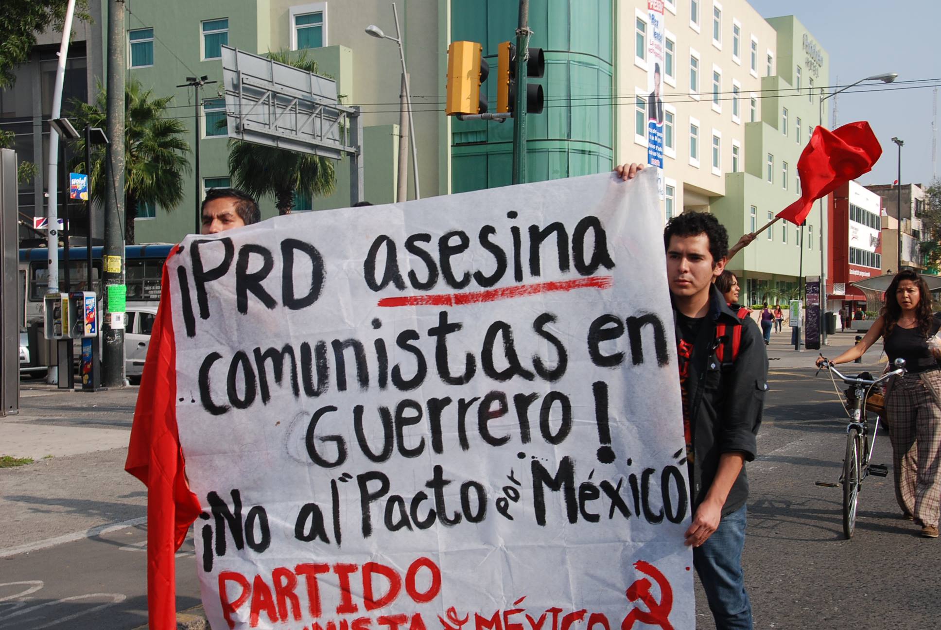 ALBERTO BUITRE.- Estas son algunas fotografías agrupadas por el área del comunicaciones del Partido Comunista de México sobre las protestas que en los estados de Jalisco, Morelos, Guerrero y el Distrito Federal, además de las ciudades españolas de Madrid y Barcelona a cargo del Partido Comunista de los Pueblos de España y los Colectivos de Jóvenes Comunistas, se han realizado en protesta por el asesinado de los camaradas Raymundo Velázquez, Miguel Solano y Samuel Vargas ocurridos el pasado domingo 4 de agosto.
